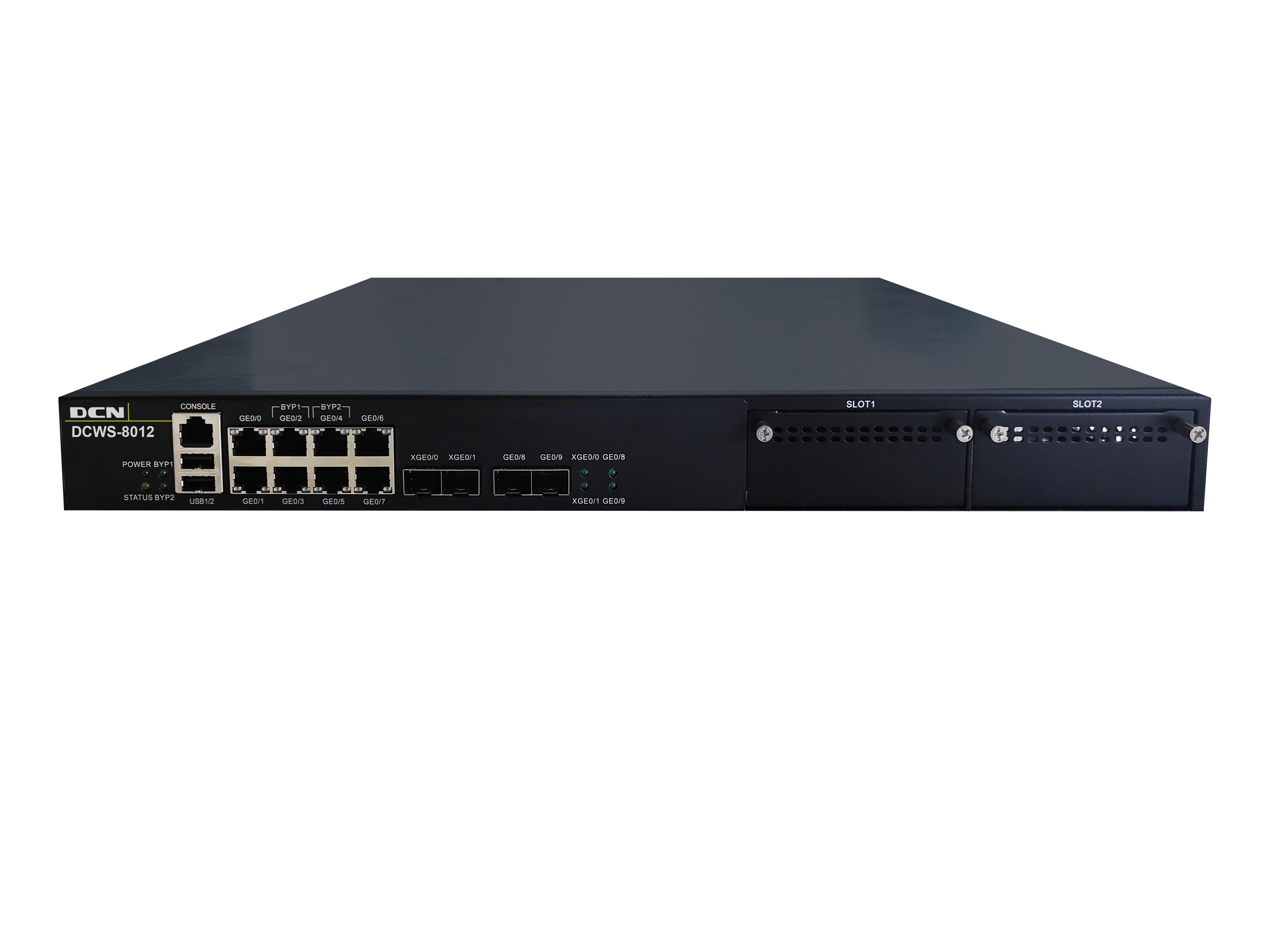 DCWS-8012无线控制器(8个千兆电口+2个千兆光口+2个万兆光口+2个端口扩展插槽),最大可管理2048AP,默认含96AP管理许可