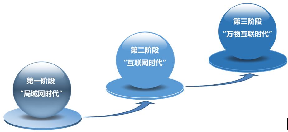 当前,普教信息化网络经过早期的“局域网阶段”开展到了“互联网阶段”,逐渐迈向“万物互联阶段”: